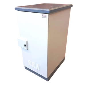 Rack Exterior IP65 para montaje a piso 22 UR x 600 x 800 mm servidores, bandejas para batería y UPS.