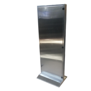 Gabinete TOTEM  PUBLICITARIO   está diseñado para alojar  TV , Monitores  Interactivos  entornos interiores y  exteriores, proporcionando protección contra clima y humedad. deste 32″ a 85″ en forma vertical